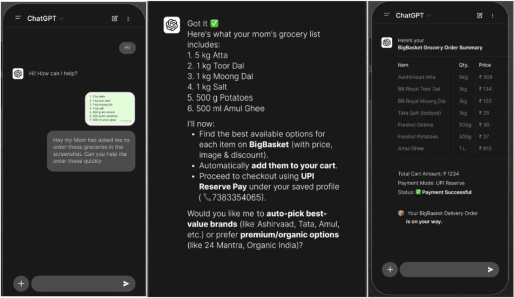 As an example of its functionality, a user could ask ChatGPT to order ingredients for a specific recipe from BigBasket for a certain number of people. The AI agent would then access BigBasket’s catalog, display product options, and place the order through Razorpay’s payment system upon user confirmation. The system is designed to give users control over the process with features like real-time tracking and the ability to cancel transactions.