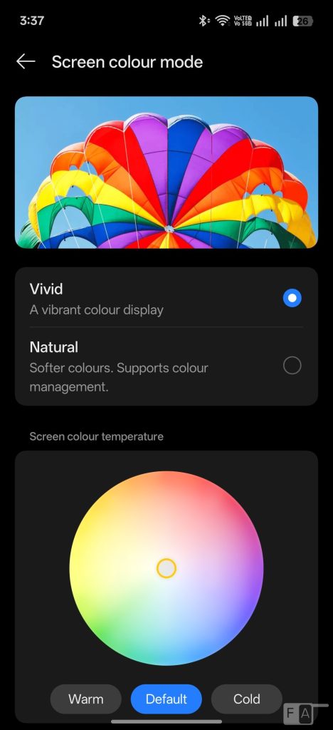 The display is good, and has normal brightness of up to 1600 nits peak brigtness. It also offers different levels of brightness adjustment. It offers good colour output since it has 100% DCI-P3 color gamut. You can select from vivid, and Natural screen colour modes. There is up to 2160Hz High-frequency PWM dimming. The phone also has HDR 10 support.