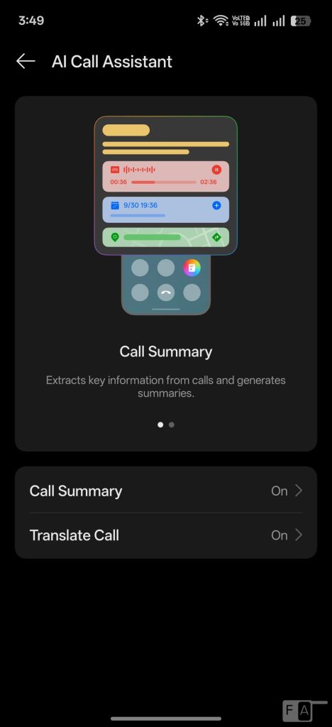 Moving on, the call quality is good, and we did not face any call drops and the earpiece volume was loud. You get the default OPPO dialer with call recording and OPPO messaging apps. There is also AI summary feature.
