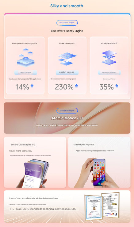 - vivo Input Method and AI Search support predictive typing and conversational queries.