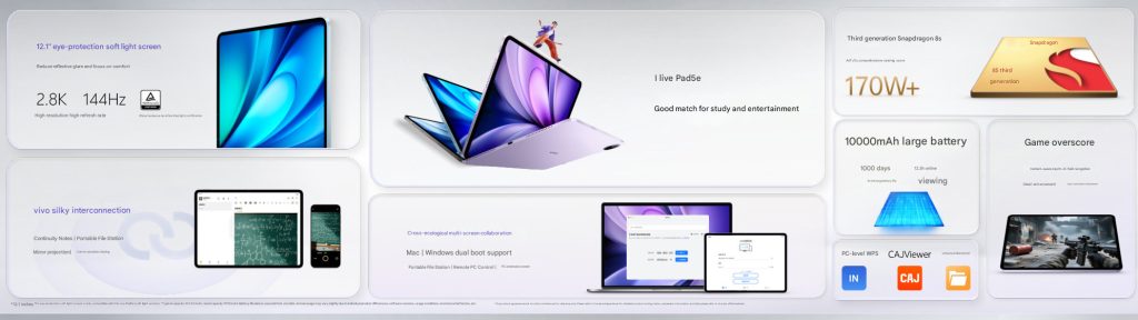 - vivo Pad5e 12GB+256GB – 2599 yuan (USD 365 / Rs. 32,380 approx.)