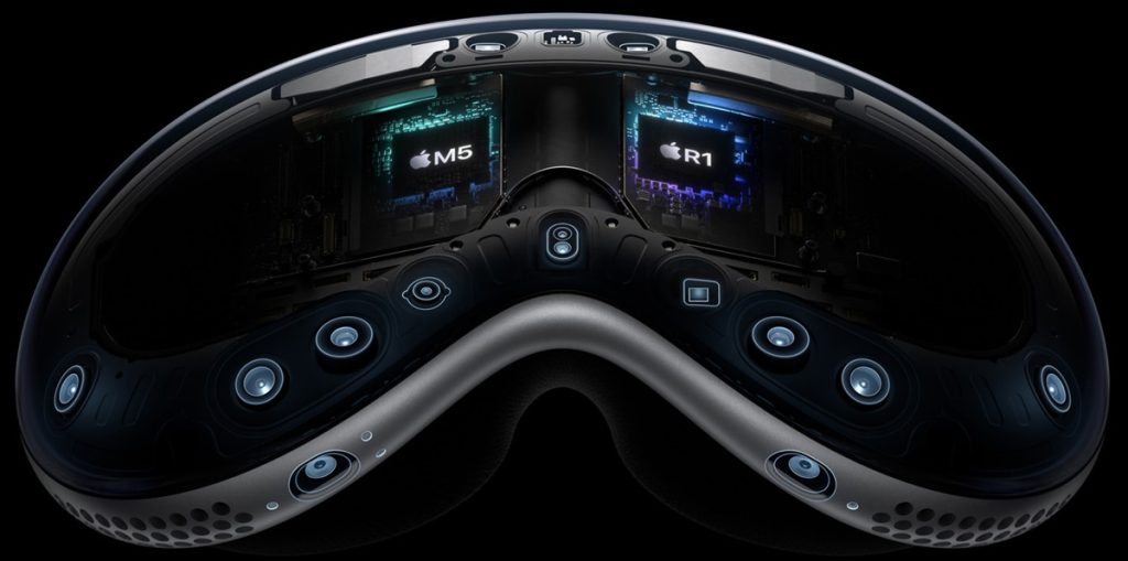 Vision Pro now renders 10% more pixels, supports refresh rates up to 120Hz, and delivers faster app launches and smoother web browsing. The R1 chip processes input from 12 cameras, five sensors, and six microphones, streaming images to the display in 12 milliseconds.