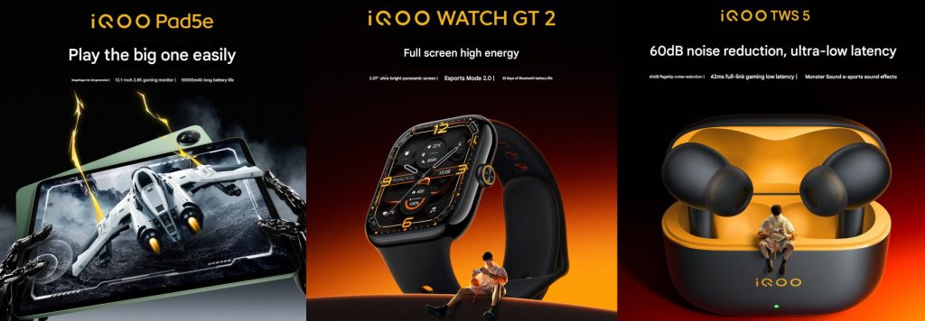 The iQOO Pad5e and iQOO WATCH GT 2 are already on sale in China, and the iQOO TWS 5 will be available from October 25th.