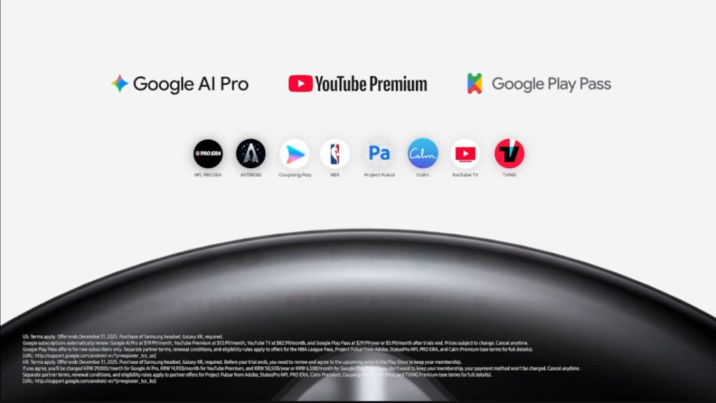 A limited-time “Explorer Pack” bundle is being offered at launch, which includes 12-month subscriptions to Google AI Pro, YouTube Premium, and Google Play Pass, as well as access to NBA League Pass (in the US) and several XR applications.