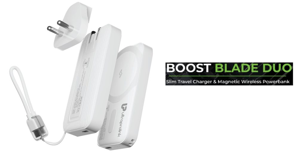 UltraProlink has launched the Boost Blade DUO, a slim charger and magnetic wireless power bank combo. The MagSafe power bank attaches magnetically via pogo pins, enabling cable-free charging. Each component can operate individually or together, delivering up to 45W from the charger and 22.5W from the power bank’s Type-C port simultaneously.