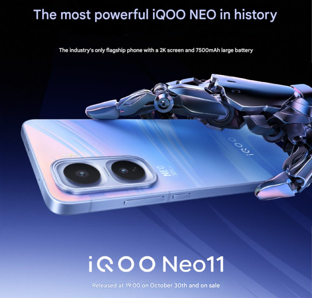 After teasers, iQOO has confirmed the launch of Neo11, as the successor to last year’s Neo10 in China on October 30th. The teaser shows dual rear cameras, and the company has confirmed that this will be the industry’s only flagship with a 2K screen and a massive, 7500mAh battery.