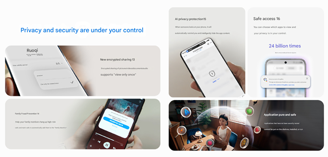 - AI Anti-Fraud Protection, detecting scams such as AI face-swap attempts during video calls.