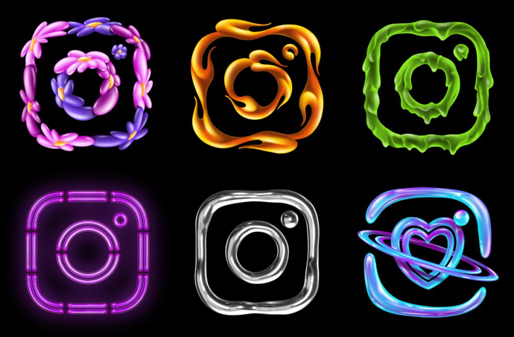 These designs—fire, floral, chrome, cosmic, and slime—were created in collaboration with illustrator @doncarrrlos (Carlos Oliveras Colom) and Instagram’s design team.