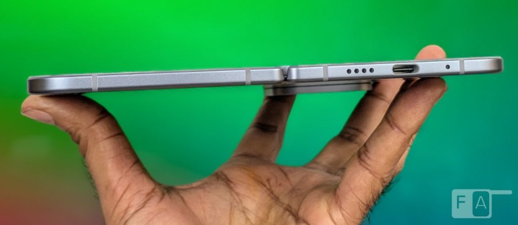 Despite the slim 10.8 mm profile when folded, the device weighs in at 258 g; while it feels incredibly well made, it does come across as slightly bulky compared to some of the thinner and lighter competition currently in the market.