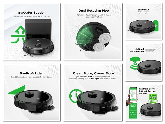 Powered by a 5200 mAh battery, the MopX2 offers up to 300 minutes of runtime and can cover areas of up to 4,000 sq ft per charge. It comes with a 1+1-year warranty and India’s first 10-year waterproof suction motor warranty, ensuring long-term reliability.
