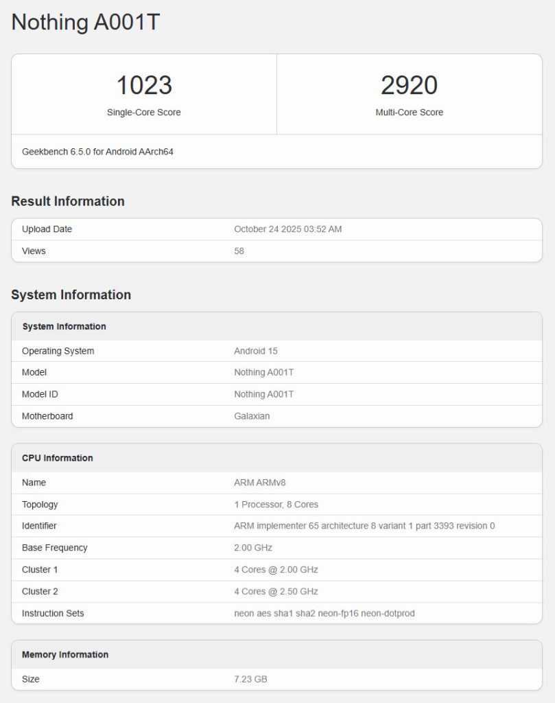 Last week, a Nothing Phone with the model number Nothing A001T showed on Geekbench listing revealing Dimensity 7300 series SoC, 8GB of RAM and Android 15, and this is expected to be the Phone (3a) Lite.