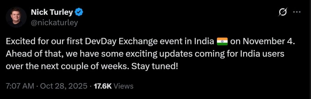 The offer applies to both new and existing ChatGPT Go subscribers and aligns with the company’s first DevDay Exchange event in Bengaluru, where it is expected to share India-focused developer updates.
