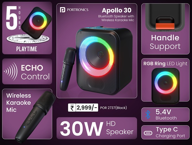 Portronics has launched the Apollo 30, a 30W Bluetooth speaker designed for music playback and karaoke use.