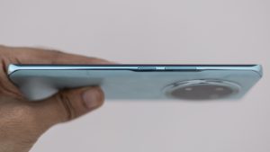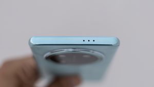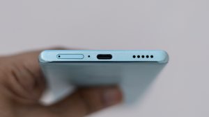 The power button and the volume rocker are both on the right edge of the device. The bottom edge is where you can find the USB Type-C port, SIM slot and the bottom speaker grill. The left edge is empty while the top edge only contains 3 holes for the secondary speaker.