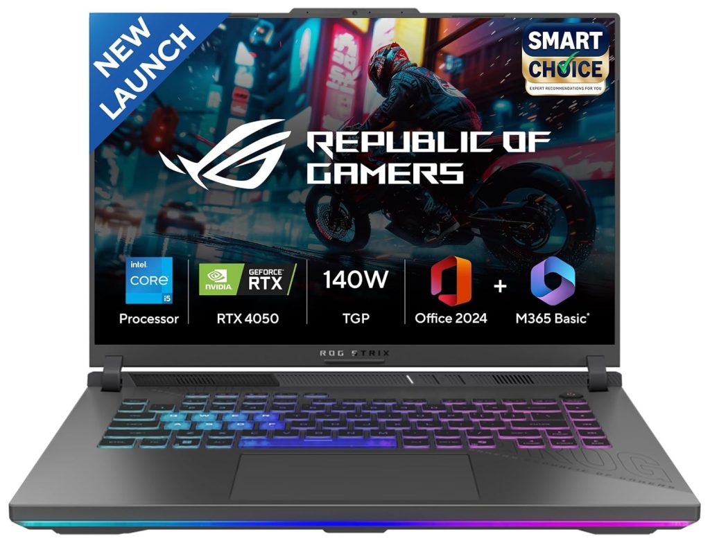 - ASUS ROG Strix G16 Gaming Laptop with Intel Core i5-13450HX, RTX 4050-6GB/140W TGP/16GB RAM/1TB SSD for Rs. 1,10,990