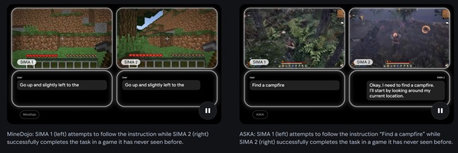 The agent demonstrates improved generalization, capable of executing complex instructions in games it was not explicitly trained on, including the Viking survival game ASKA and MineDojo, a Minecraft research environment.