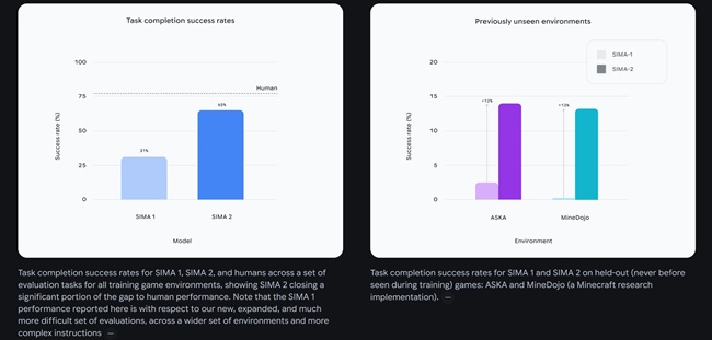 When combined with Genie 3, which generates real-time 3D environments from images or text, SIMA 2 can navigate and perform goal-directed actions in previously unseen worlds. This demonstrates the agent’s adaptability to novel environments.