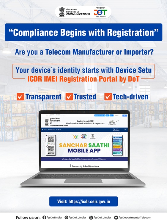 All devices must be registered via the Device Setu – ICDR portal: https://icdr.ceir.gov.in