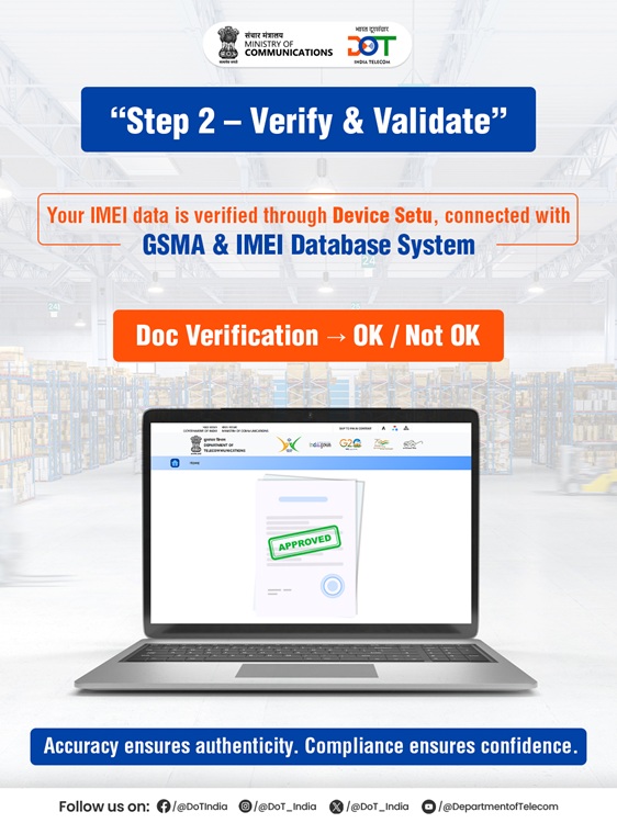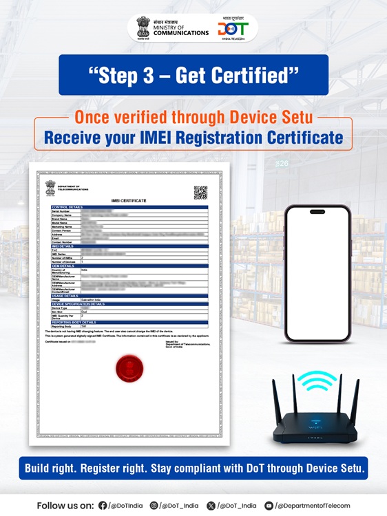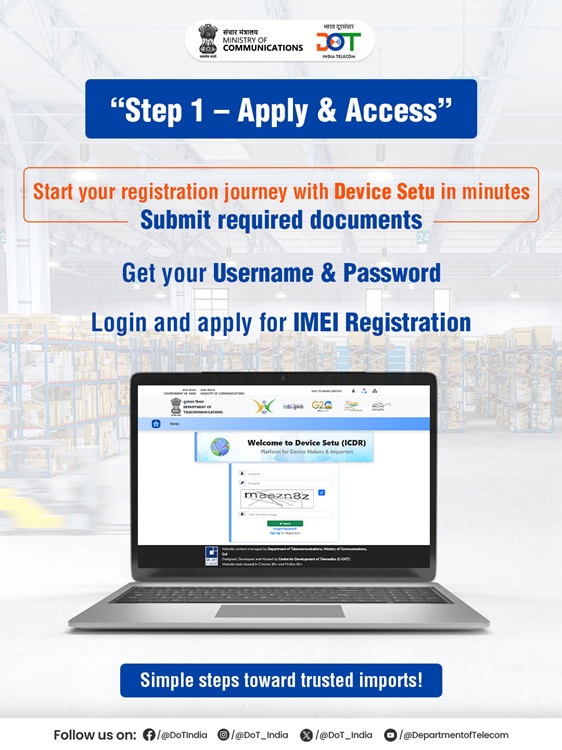- Registration is completed via Device Setu – Indian Counterfeited Device Restriction (ICDR) portal