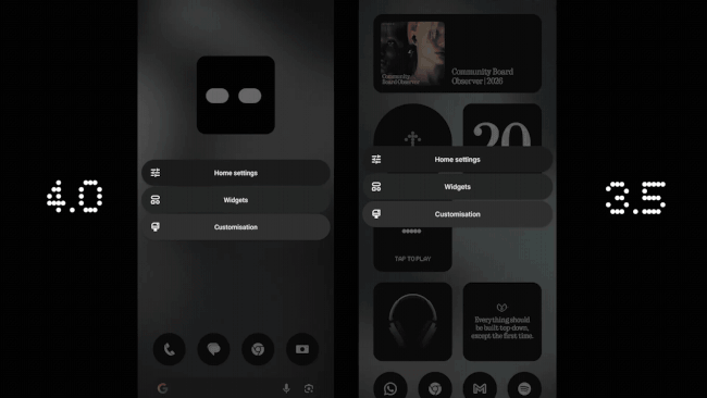 Everything in Nothing OS 4.0 moves smoothly with refined system physics. Key improvements include: