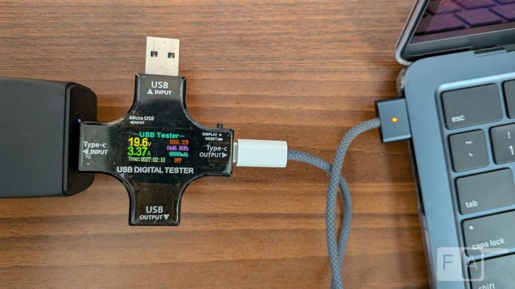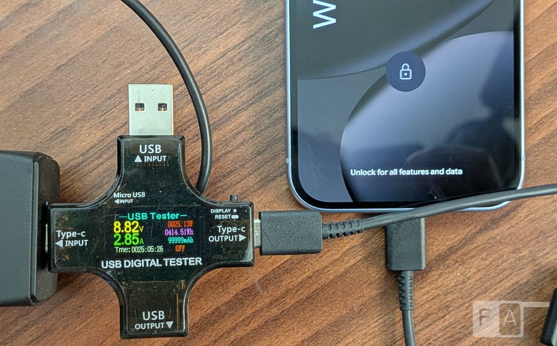 To put the charger to test, we connected the Galaxy S25 FE, which pulled maximum 40W from the charger. Pixel 10 pulled 25W. We even tried MacBook Air M4, which pulled 66W.