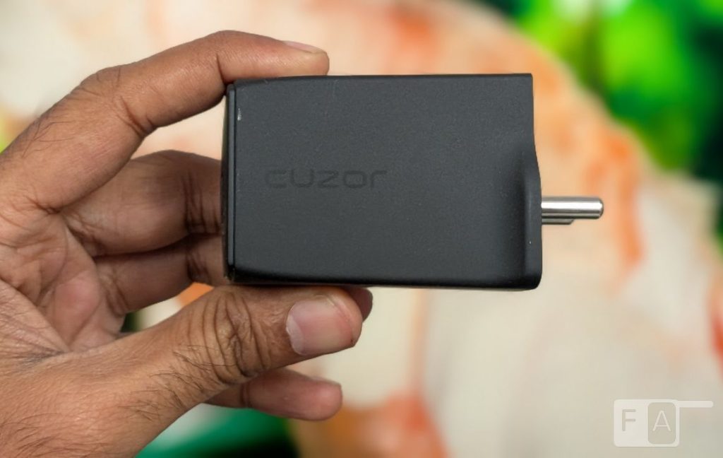 Starting with the design, the charging charger has a small compact design, and there is a cuzor branding on both the sides. It has a plastic build, but comes with a matte finish so it doesn’t attract fingerprints or smudges.