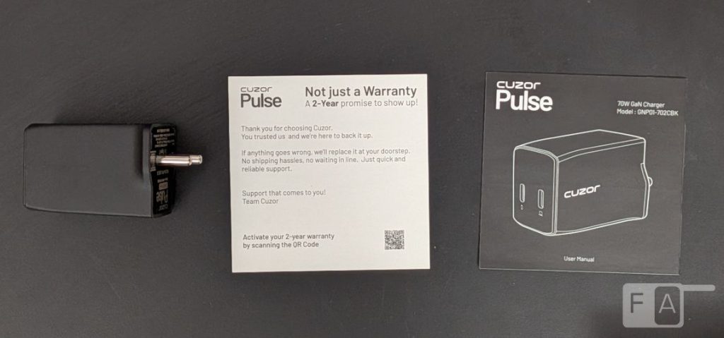 - Cuzor Pulse 70W Dual Port GaN charger in Black colour