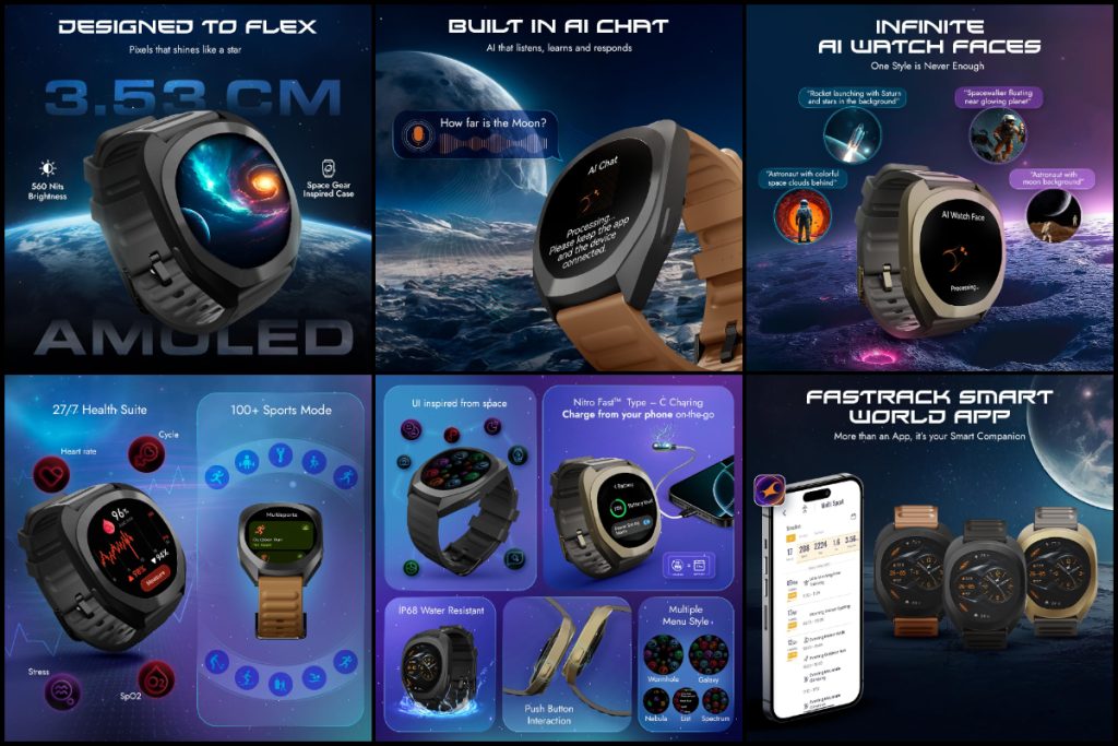 Today, standing out begins with design—and Fastrack Smart Cosmix was created with that belief at its core. Its distinctive space-helmet-inspired form makes a bold statement, and its AI engine adds clarity and convenience to everyday life. Inspired by Space. Powered by AI. Fastrack Smart Cosmix blends high-impact design with intelligent performance for people who want technology that truly enhances their lifestyle.