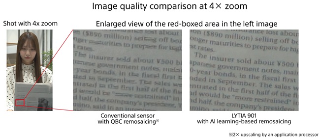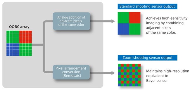 Sony has developed a new AI learning-based remosaicing technique for the QQBC structure and integrated the processing hardware directly into the sensor. This enables reproduction of high-frequency visual elements while supporting real-time zoom recording.