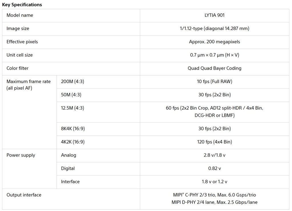 Sony Semiconductor Solutions Corporation today announced the upcoming release of the LYTIA 901, a 1/1.12-type stacked CMOS mobile image sensor featuring approximately 200 effective megapixels. The sensor introduces a redesigned pixel architecture, improved low-light capture, and AI-based image processing embedded inside the sensor to preserve detail during zoom shooting and video recording.