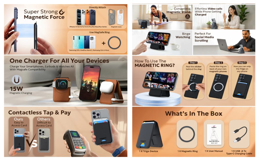 The Trigo is not just another phone accessory — it is an update to how you can conveniently use your smartphone while on the move. With fast wireless charging, strong magnetic stability, premium materials, and multifunctional everyday use, TEMPT’s Trigo 15W MagSafe Wallet Charger redefines what a wallet, charger, and phone stand should be in today’s fast-paced world.