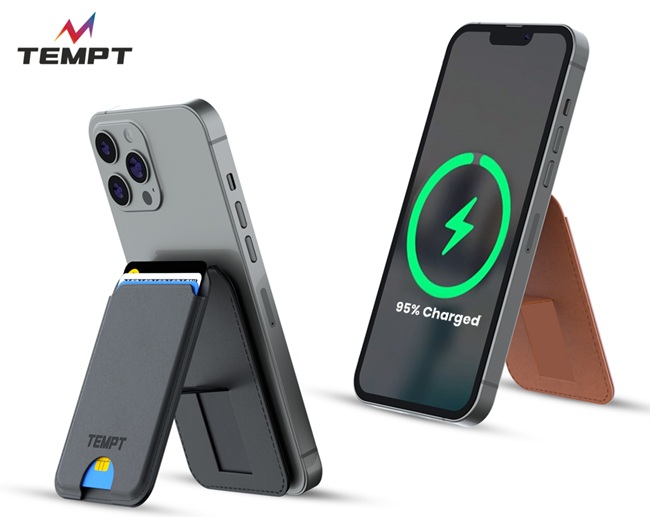 TEMPT expanded its smartphone accessory lineup with the introduction of Trigo, a 3-in-1 attachment that functions as a MagSafe wallet, a 15W magnetic wireless charger, and a mobile stand. It attaches magnetically to the back of a phone and provides wireless charging when connected to a power bank or wall charger.