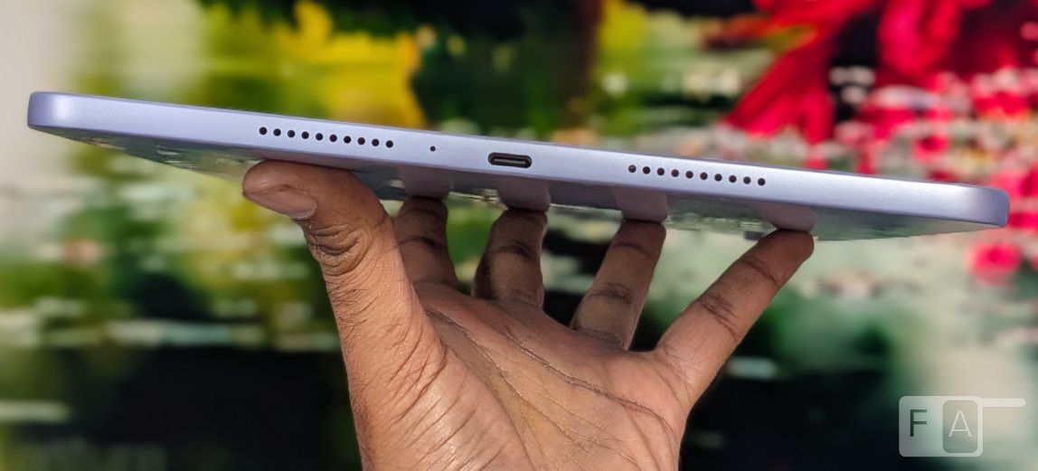 You can see the power button on the top along with speaker grills. The USB Type-C port is on the bottom along with a microphone, and speaker grills.