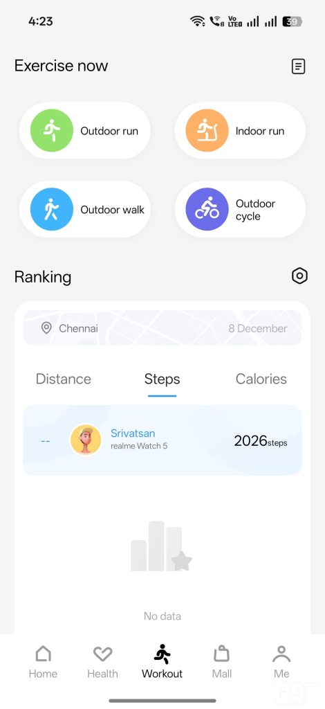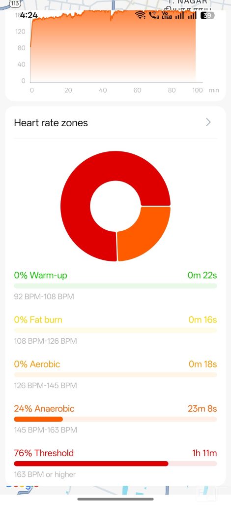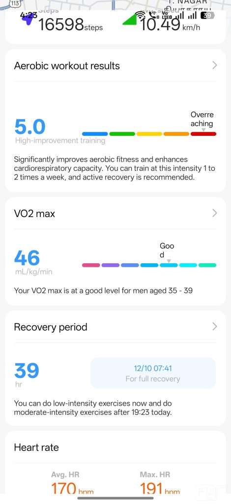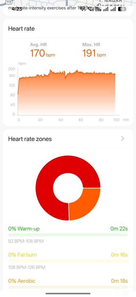 Compared to tracking apps like Strava running on mobile, or other GPS watches like Amazfit Active 2 that also has GPS, it is almost accurate in GPS tracking. You can share the workout data as an image, and there is also Google Fit integration. It still doesn’t have an option to sync to Strava, Runkeeper or any other popular apps.