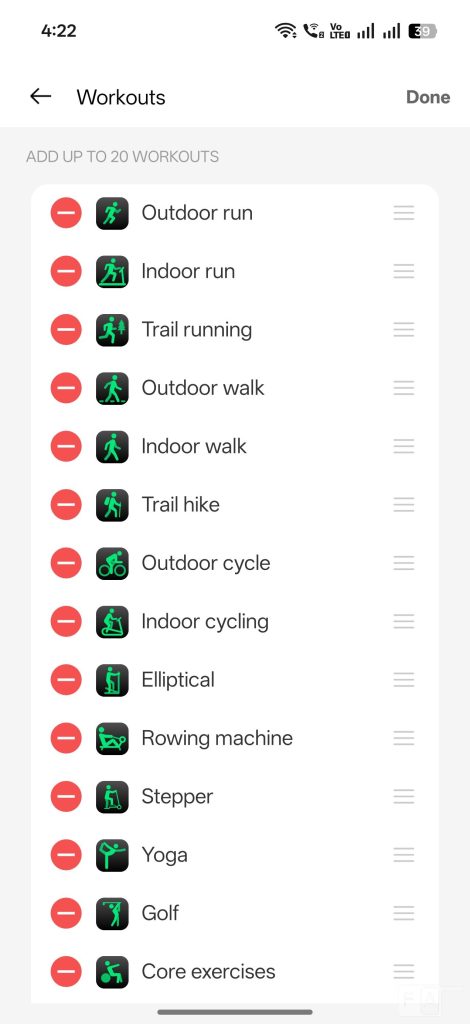 It has an option to sync your data to Google Fit, but this needs to be enabled directly from the app inside Me→Settings→Sync data to a third-party service, and select the watch 5. Even though there are 108 workout modes, you can only choose up to 15 workout modes to show in the watch.