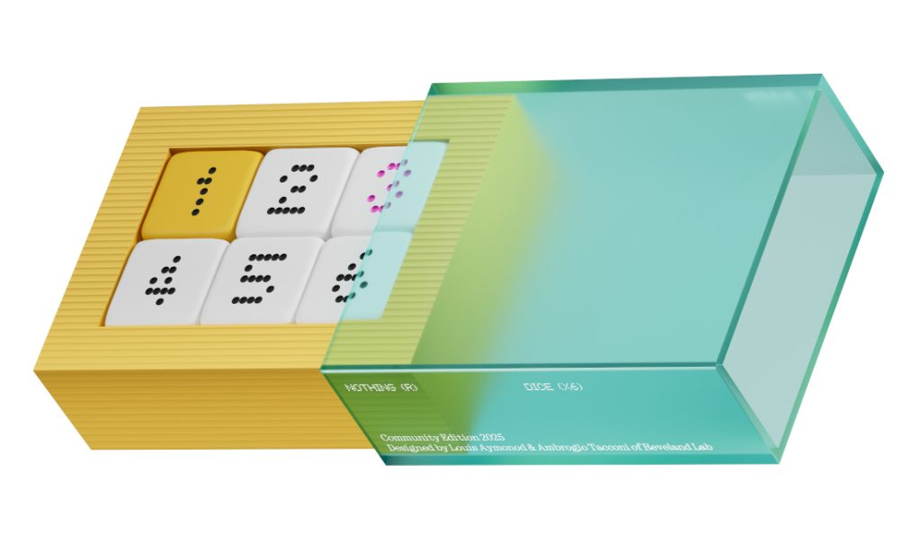 - Accessory: In a new category for 2025, winners Ambrogio Tacconi and Louis Aymonod (Reveland) designed a set of Dice. The accessory features numbers rendered in Nothing’s Ndot 55 font, aiming to blend the concept of traditional play with the brand’s technical aesthetic.