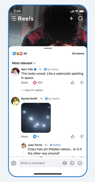 The commenting system across Feed, Groups, and Reels has been updated to support streamlined replies, prominent badges, and pinning options. Group admins and creators have additional moderation controls. All users can now flag comments anonymously if content is irrelevant or inappropriate.