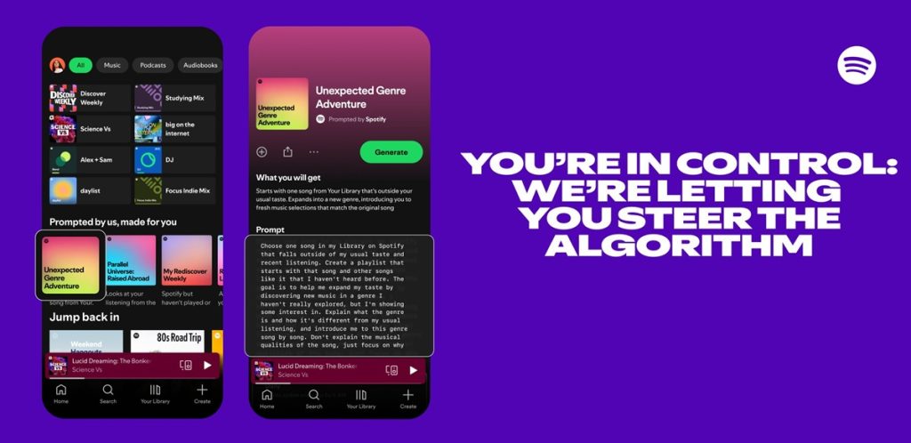 From Discover Weekly to Release Radar, Spotify has always made listening personal. Tools like Smart Shuffle, Playlist song suggestions, and Mixing Tools let users shape their playlists. But Prompted Playlists go further: you can now guide the algorithm with your own words, ideas, and logic. Spotify listens and adapts to create playlists tailored to your full listening history.