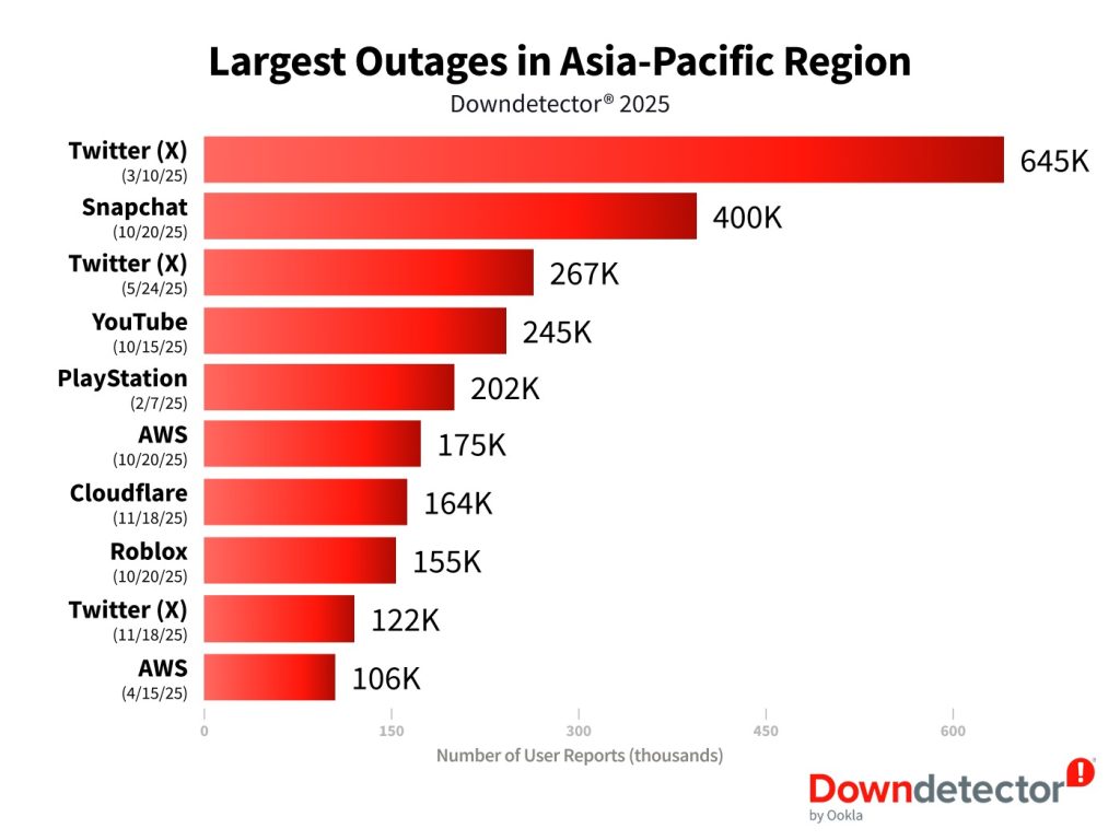 Ookla, using Downdetector data from 2025, analyzed millions of user-submitted reports to identify the largest website and service outages of the year across global and regional markets. The analysis shows that while digital platforms remained essential in 2025, they also proved fragile—particularly when failures occurred at the infrastructure level.