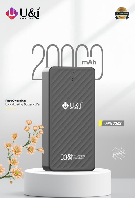 The UiPB 7362 Entry Star 74 powerbank has a 20,000mAh battery with 33W fast charging output, supporting PD and QC fast charging protocols. It features: