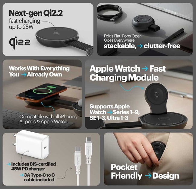 The Stuffcool Nexi 3-in-1 Foldable Magnetic Wireless Charger (Qi2.2, 25W) is priced at Rs. 5,999 and is available starting today on the company’s official website.