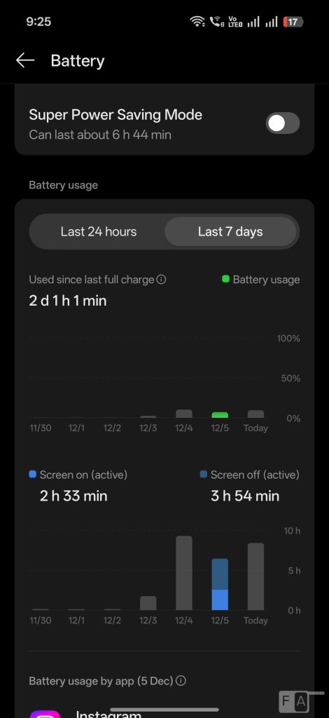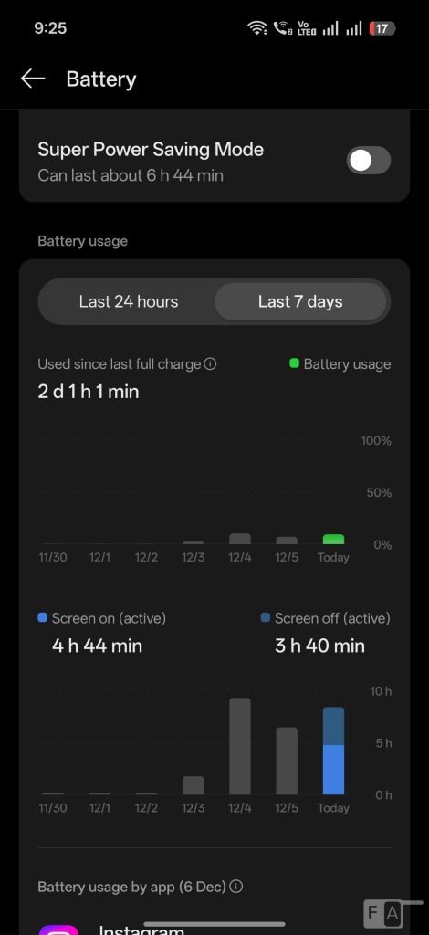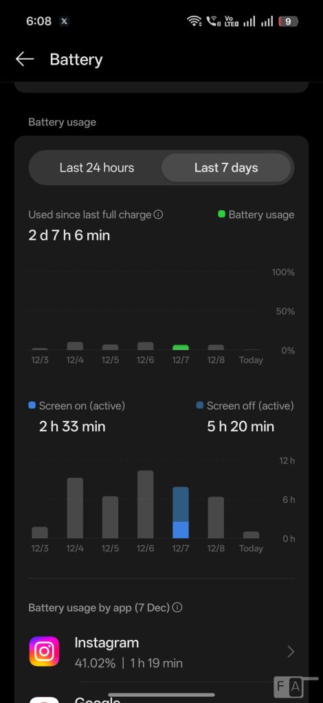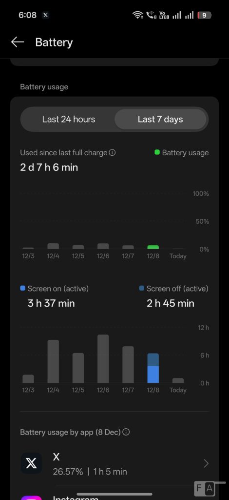 Coming to the battery life, the phone packs a whopping, 7500mAh 3rd gen silicon-carbon (typical) battery compared to 5910mAh in the Find X8 Pro without increase in the size of the phone. It can easily last for more than a day, even with heavy use. I got over 7 half hours of screen on time with 2 days of use, mostly on Wi-Fi, and occasional 5G use in 120Hz in 1.5K resolution.
