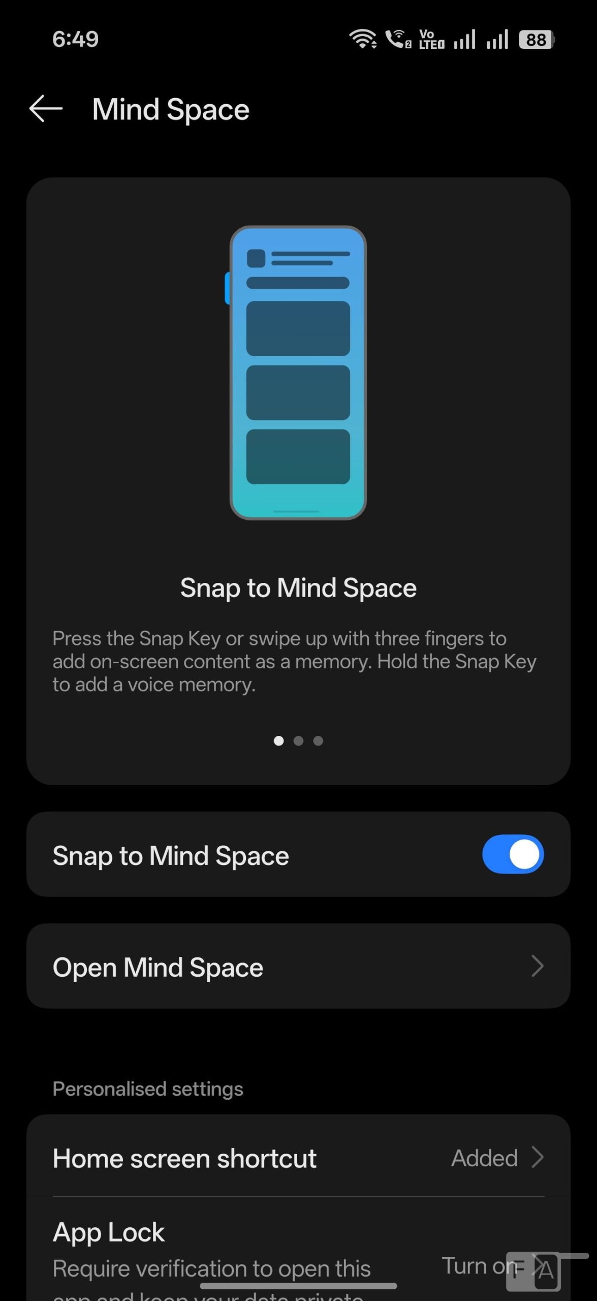 It lets users save and organize important on-screen information — such as events, bookings, or listings — into a dedicated Mind Space, helping avoid information overload. A short-press captures the screen content, a