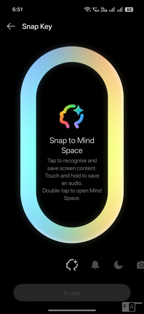 The new Snap Key that replaces the alert slider lets you switch between ring, vibrate, and silent modes. Additionally, customization allows for quick access to features like the camera, translation, or flashlight. You can also set it to launch Mind Space, which saves your content so that you can access them later.