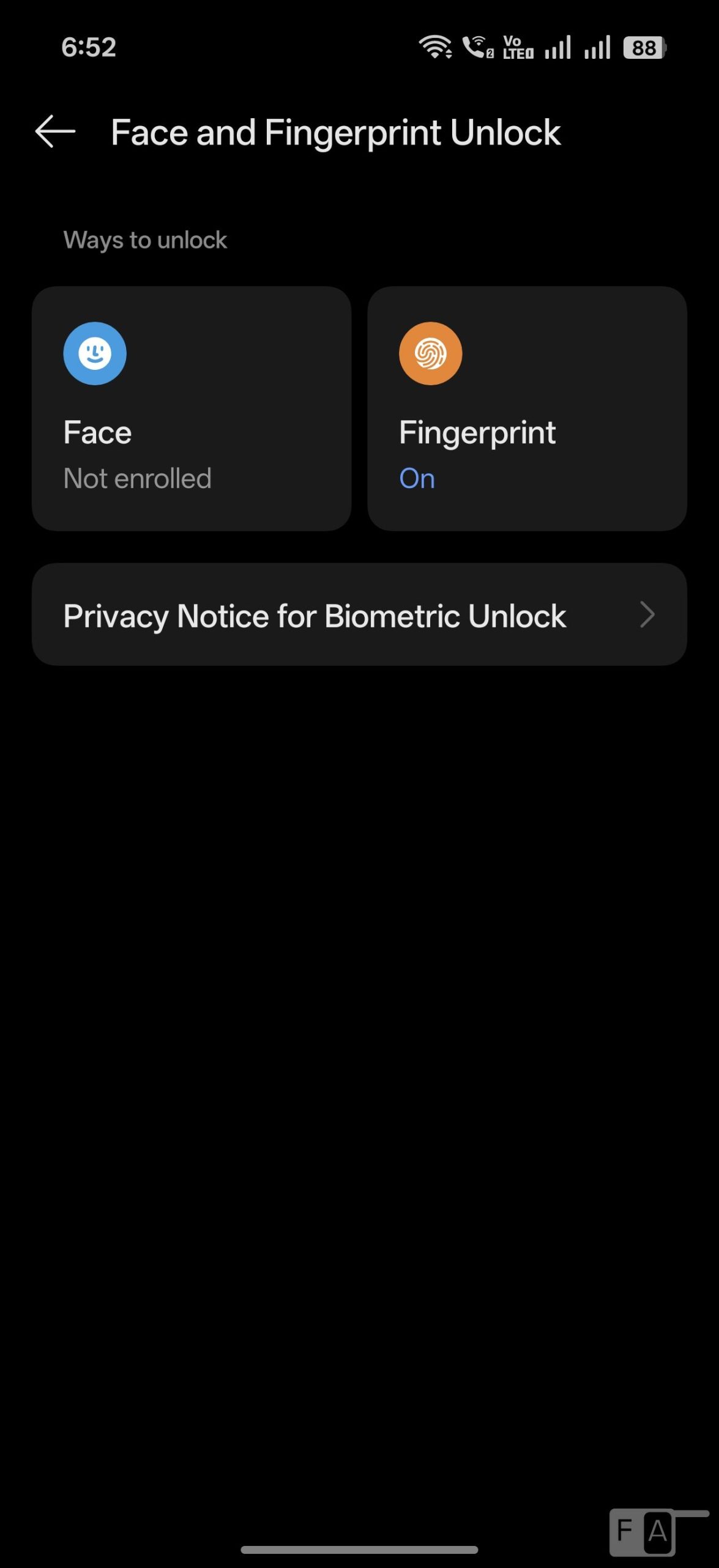 Fingerprint sensor and Face unlock