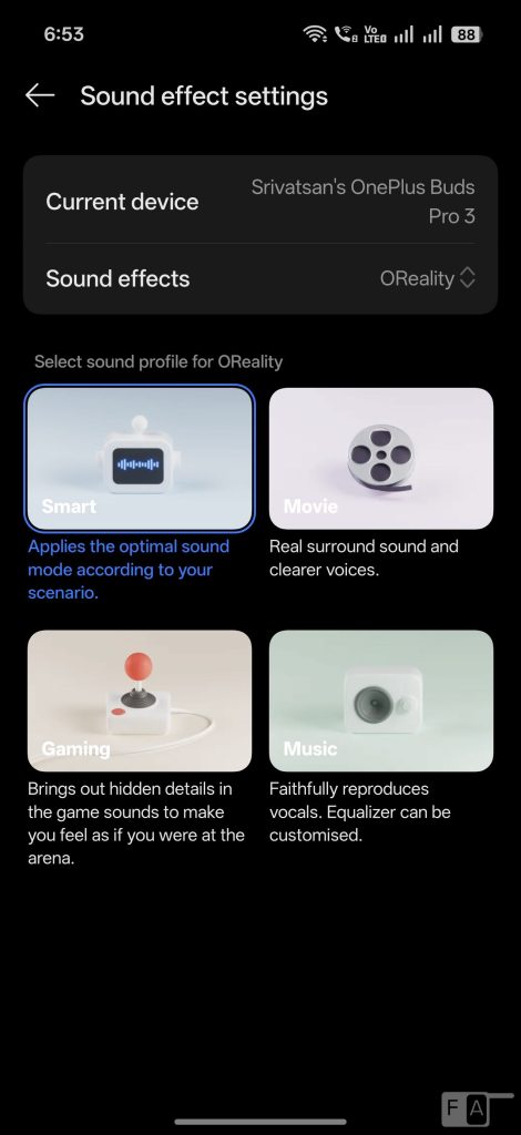 It has customizable Smart, Movie, Game and Music modes. It doesn’t have FM Radio support. Audio through the stereo speakers is good without any distortion even in full volume. Audio through earphones is good as well.