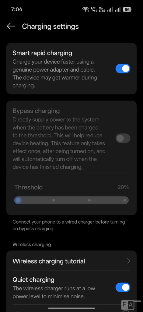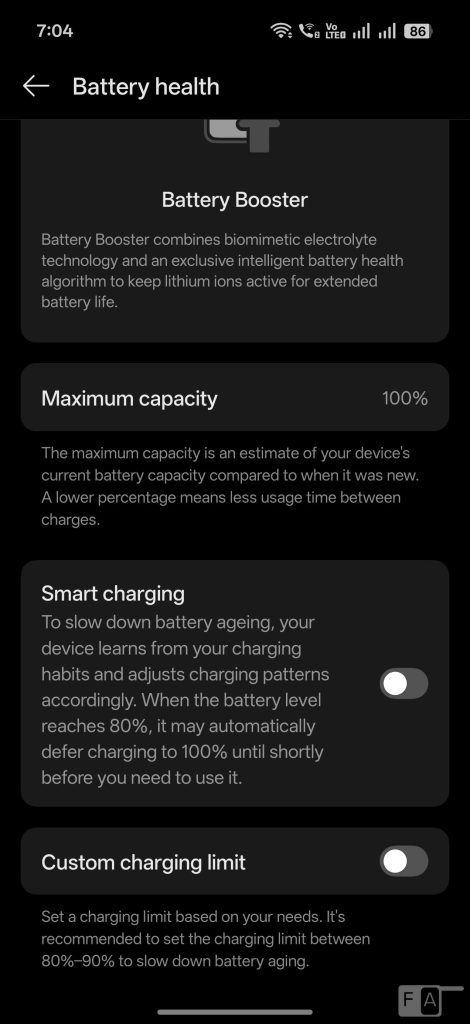 Since the phone has support for 80W SuperVOOC fast charging, it can charge from up to 50% in less half an hour and 100% in an hour. You can also use a 55W PD charger to charge the phone. There are smart charging, option to stop charging at 80%, and the smart rapid charging can charge the device faster if the battery is too low.