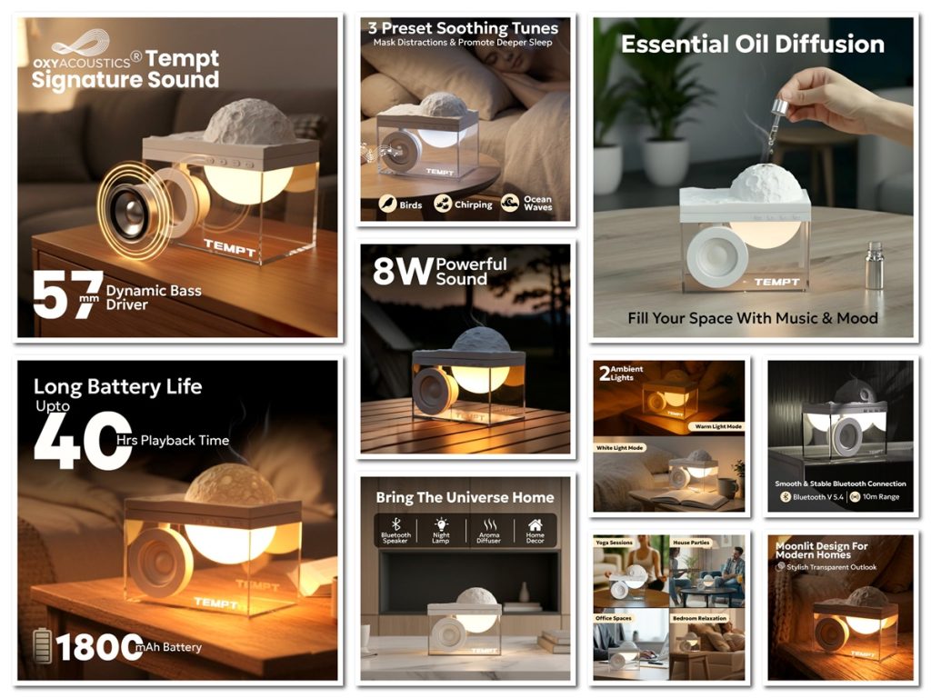 TEMPT India has announced the PRIVEE Lunar, a 4-in-1 Bluetooth speaker designed for home and office use. The device combines audio playback, ambient lighting, aroma diffusion, and preset calming sound modes into a single unit, providing a compact solution for creating a calm indoor environment.