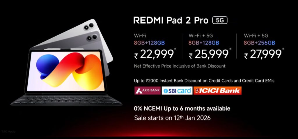 The REDMI Pad 2 Pro is priced at Rs. 24,999 for the single 8GB + 128GB model.