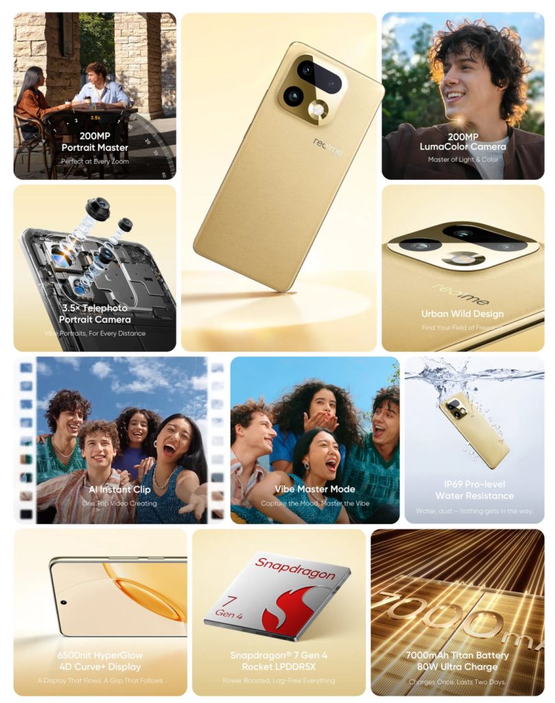 - realme 16 Pro: While it shares the main 200MP sensor, it relies on a “Golden Portrait Lens Kit” for focal length switching rather than the periscope lens found on the Plus model.